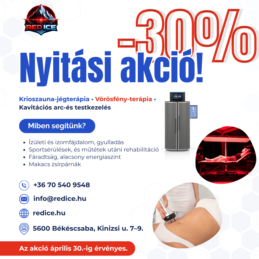 Modern krio-, vörösfény- és kavitációs kezelésekkel segítjük szervezete természetes regenerációs folyamatait. Célunk, hogy Ön gyorsabban épüljön fel, erősítse immunrendszerét, és hosszú távon megőrizze egészségét – biztonságos, korszerű környezetben.